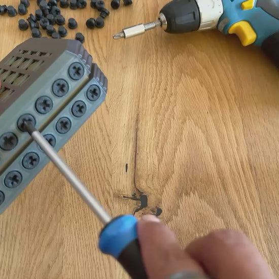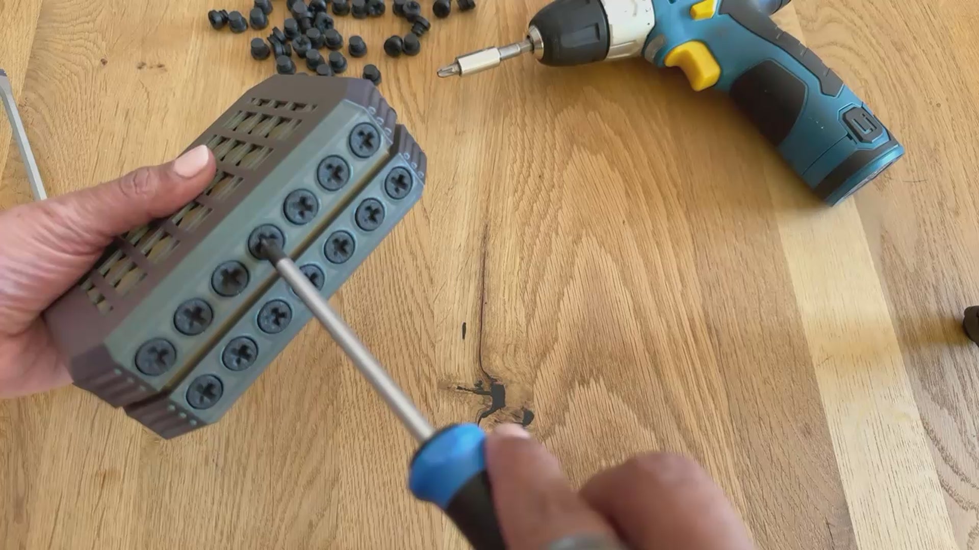 Die Schrauben können natürlich auch mit einem handelsüblichen Kreuzschraubendreher oder Akkuschrauber verschraubt werden.